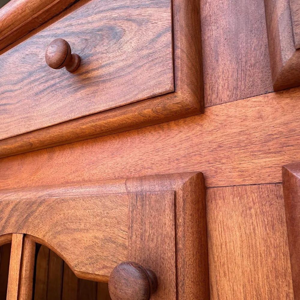 Este bahiut tiene terminación encerada. Si lo preferís laqueado, también lo hacemos: solo tenés que solicitarlo al momento de pedir el presupuesto.
