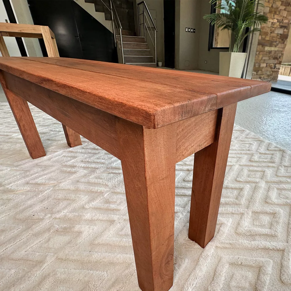 Este banco de madera maciza está pensado para acompañar tu mesa de comedor o galería y convertirse en ese compañero donde se comparten charlas, mates y comidas en familia. Su diseño simple, robusto y funcional aprovecha muy bien el espacio, tanto en comedores como en un quincho.