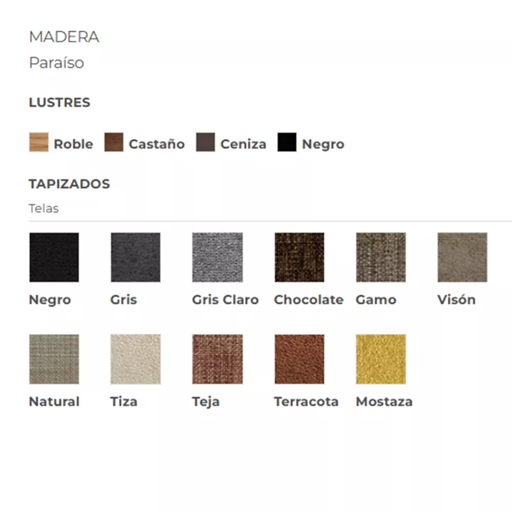 | Por qué elegir esta silla | Porque su diseño moderno y nórdico. Su estructura en madera paraíso se entrega en tono natural o en distintos lustres (ver muestrario adjunto) |