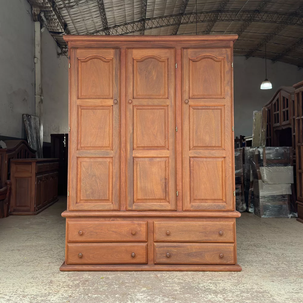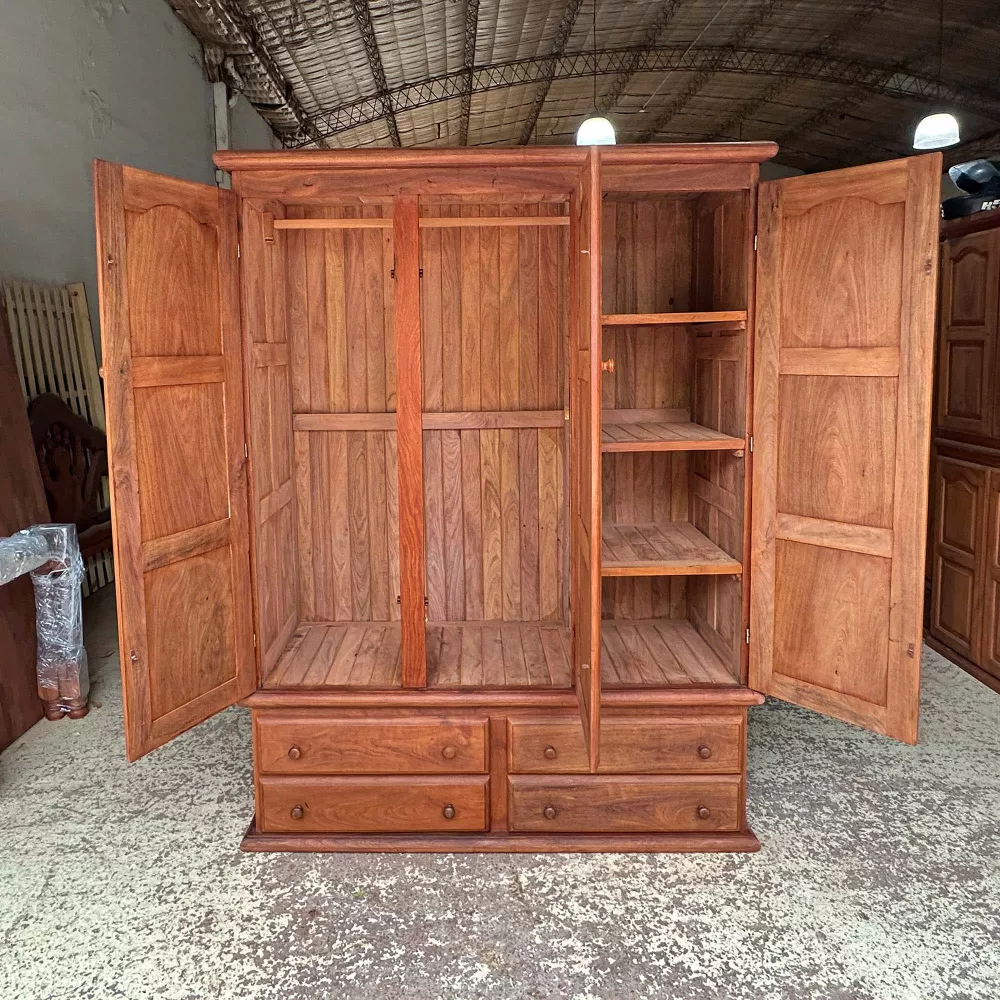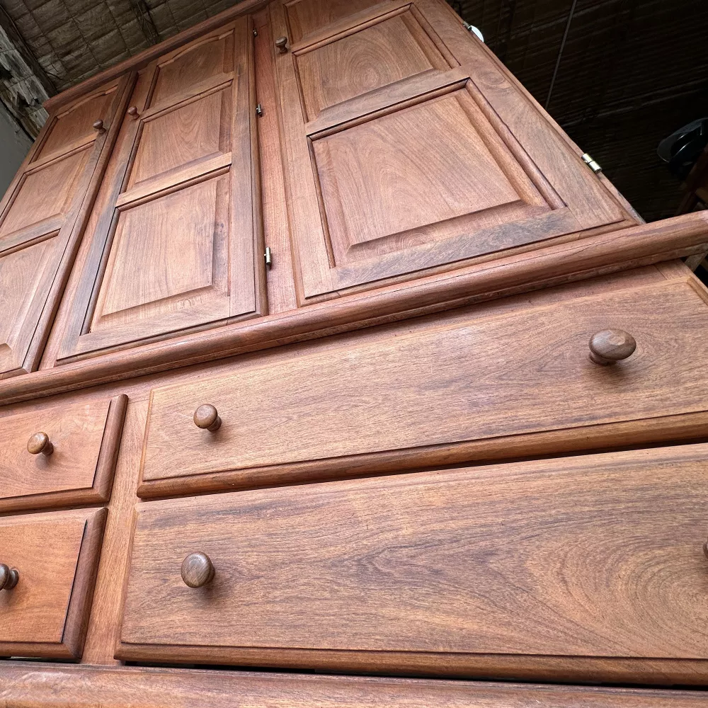 Este placard de madera nuevo, está diseñado para ofrecer funcionalidad y elegancia a cualquier espacio. Fabricado con materiales de primera calidad, este ropero de madera resalta por su belleza natural y resistencia. En nuestra fábrica especializada en muebles de algarrobo, nos enorgullece ofrecer productos de calidad suprema, sin nudos ni masilla, 100% algarrobo.