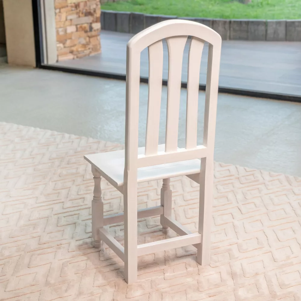 Añadí un toque de encanto campestre y luminosidad a tu hogar con nuestra silla de comedor de madera blanca. Su diseño clásico y atemporal, con detalles torneados, la convierte en la elección perfecta para cocinas, comedores, restaurantes o cualquier espacio que busque un ambiente acogedor y fresco.