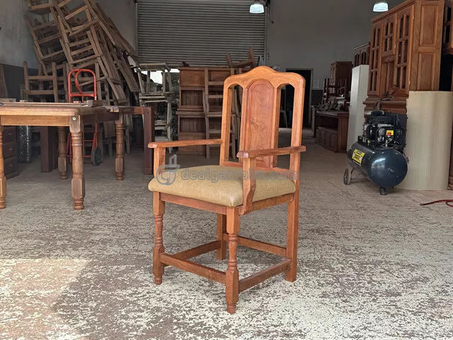 | Por qué elegir esta silla | Porque ofrece una comodidad inigualable gracias a su tapizado y apoyabrazos, y está construida en algarrobo macizo de alta dureza, estable y resistente, ideal para comedores familiares de uso diario |