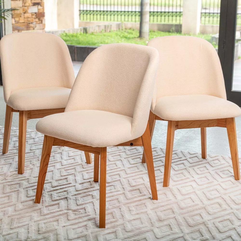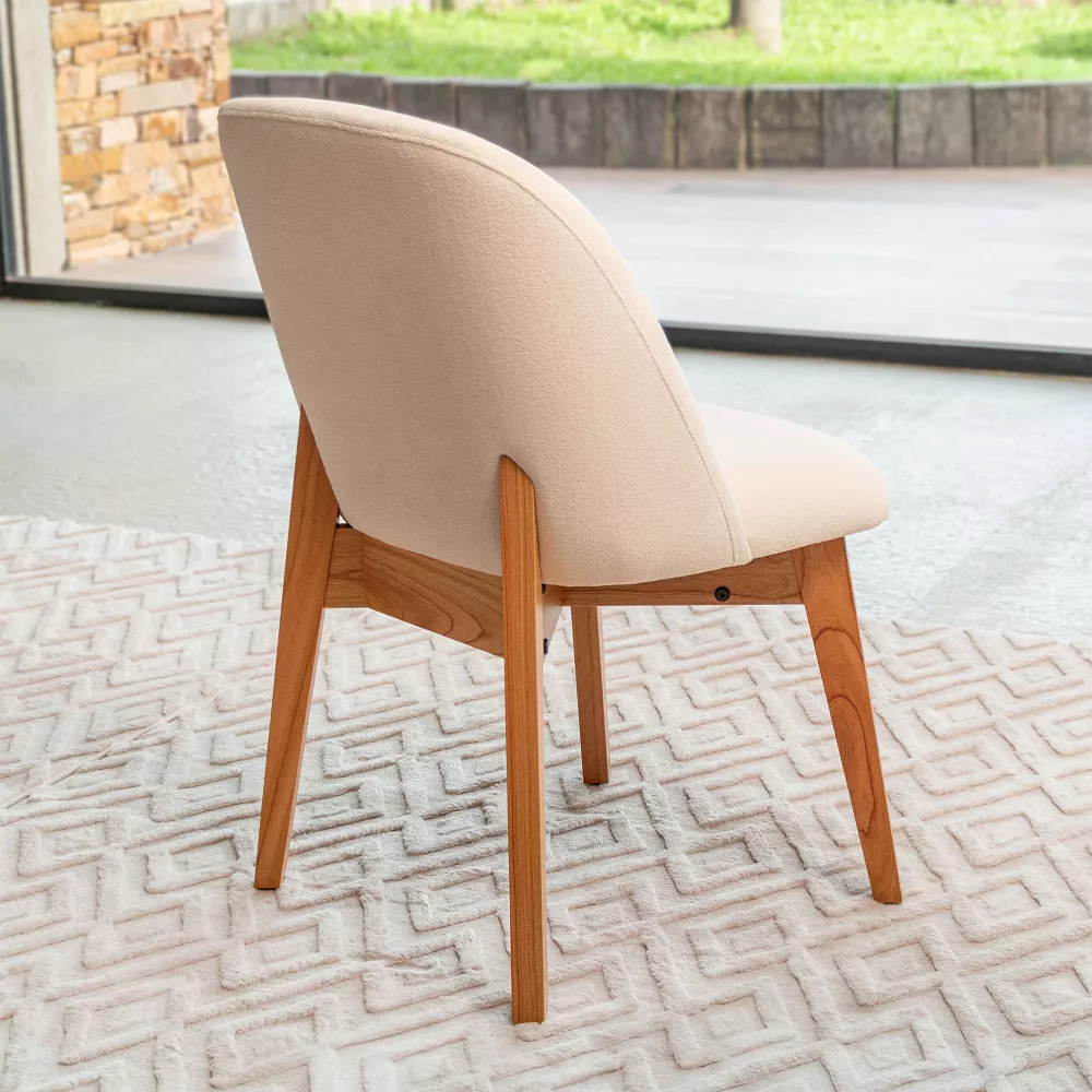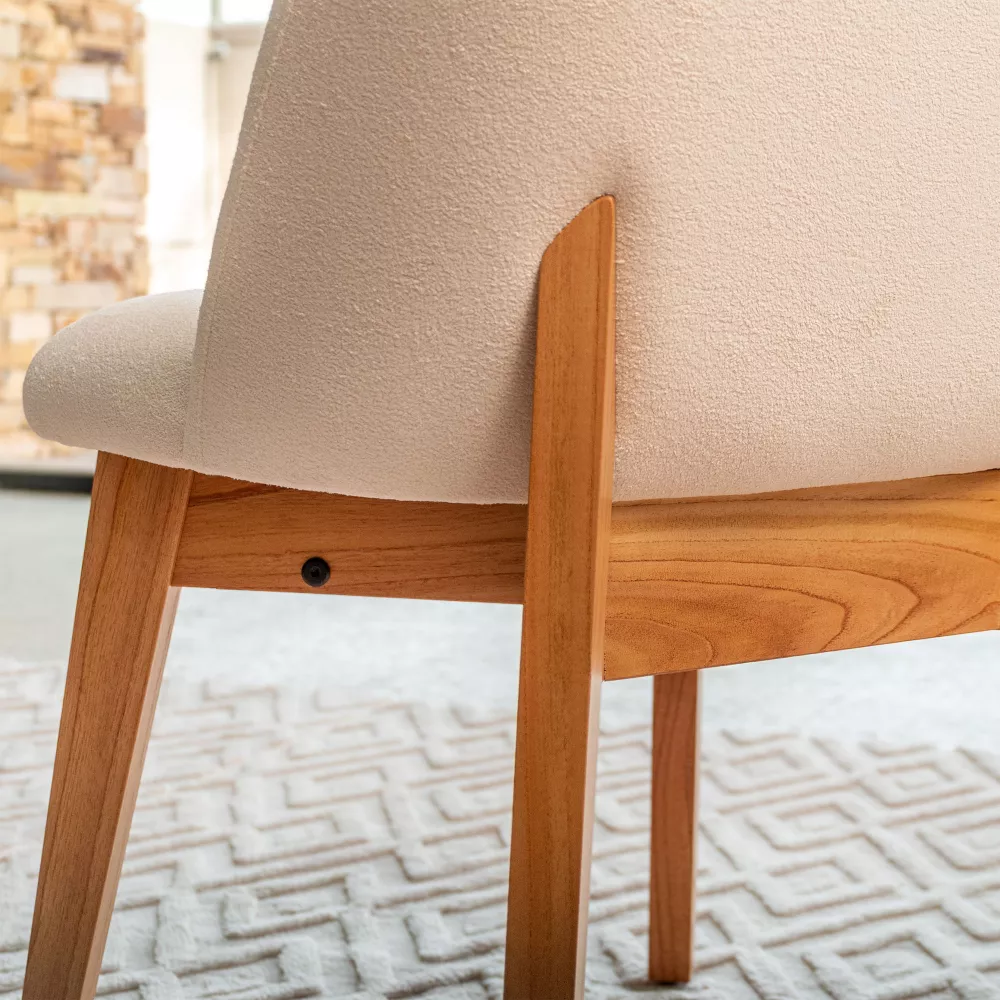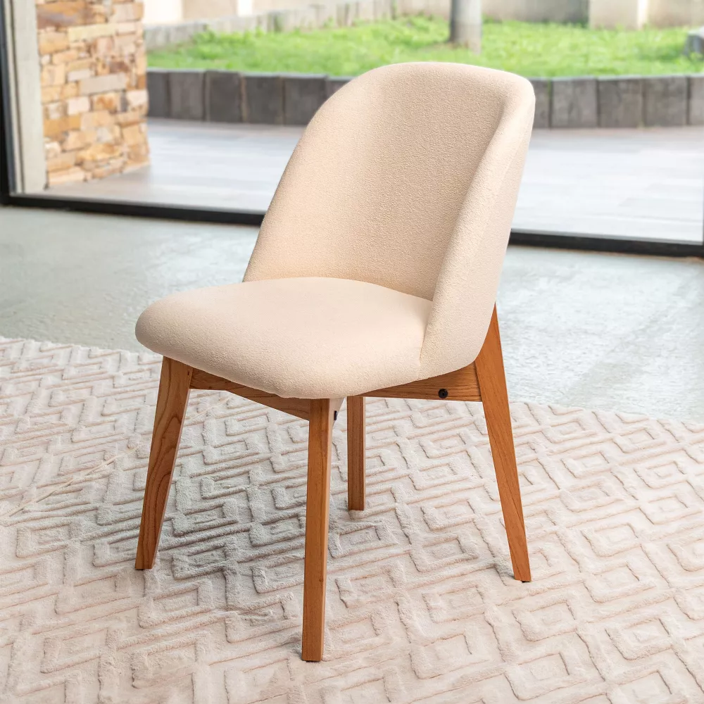 La silla de comedor con respaldo curvo tapizado combina confort, estética moderna y materiales de calidad. Su estructura sólida en madera de paraíso y el respaldo suavemente curvado aportan elegancia y ergonomía, adaptándose perfectamente a comedores luminosos o de estilo nórdico. Las terminaciones prolijas y las proporciones equilibradas la hacen ideal para uso diario.