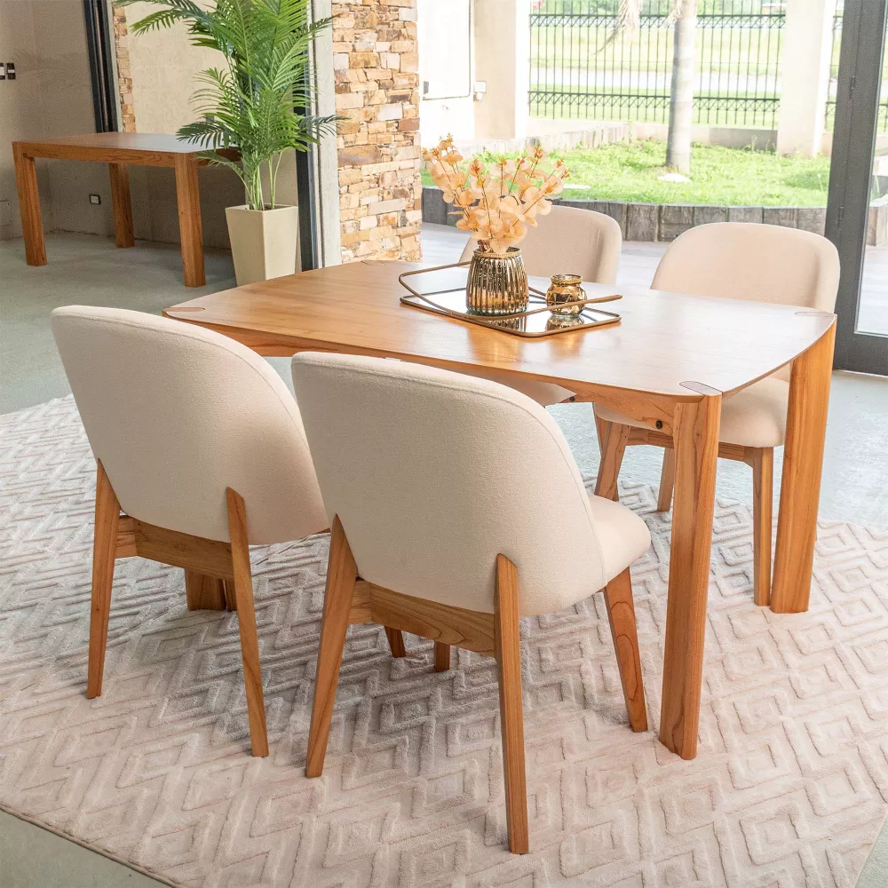Podés personalizar el tapizado y el acabado de la madera según el estilo de tu mesa o la paleta de tu ambiente, manteniendo siempre la calidez del diseño original.