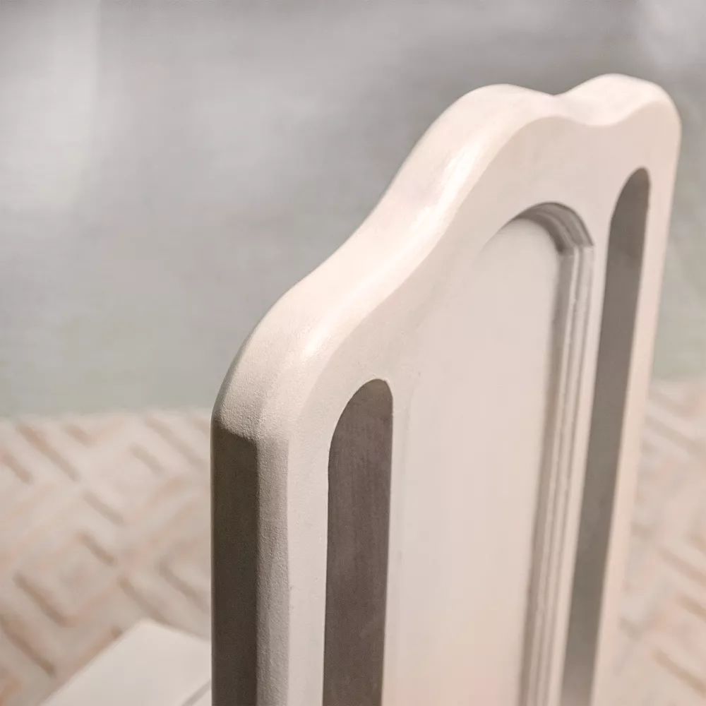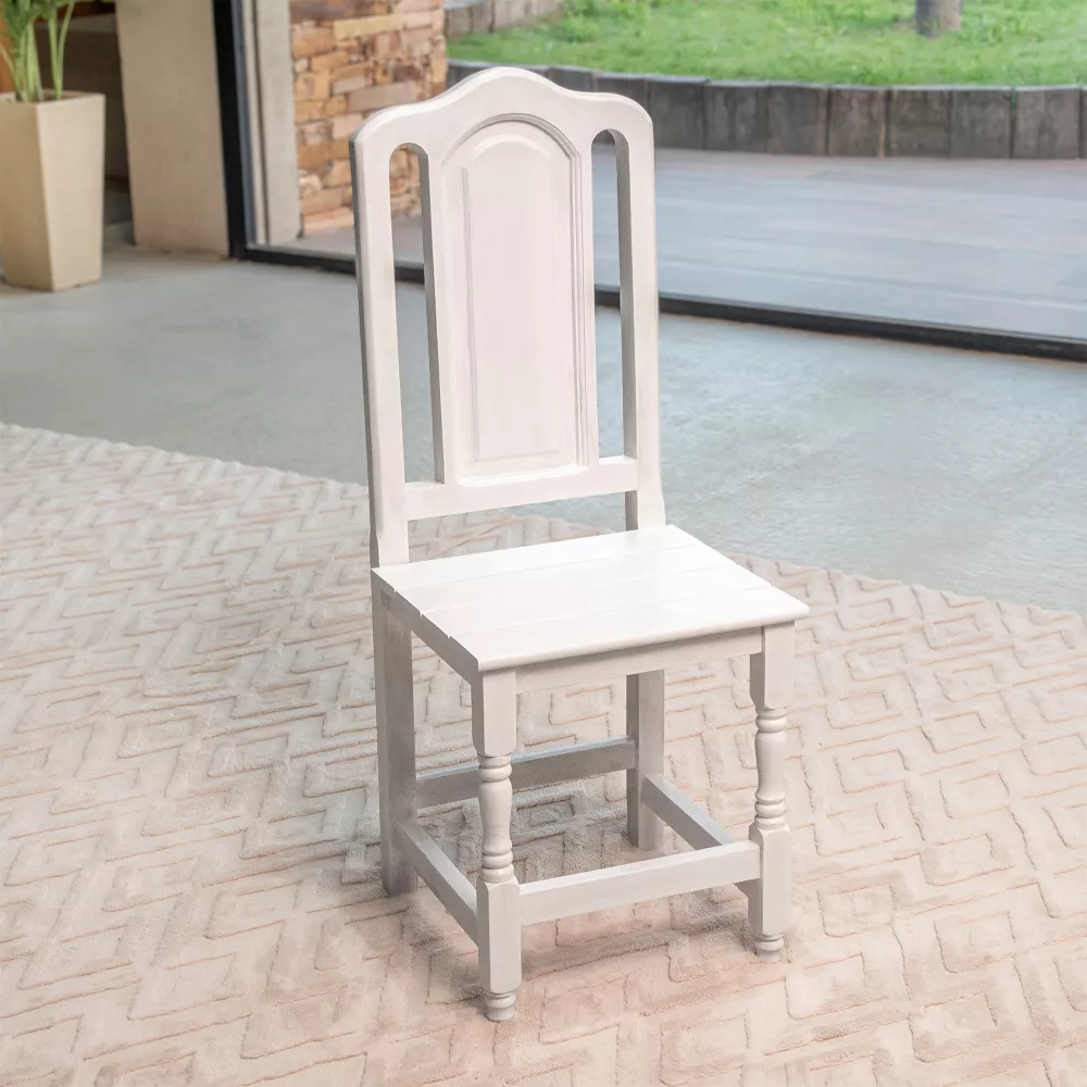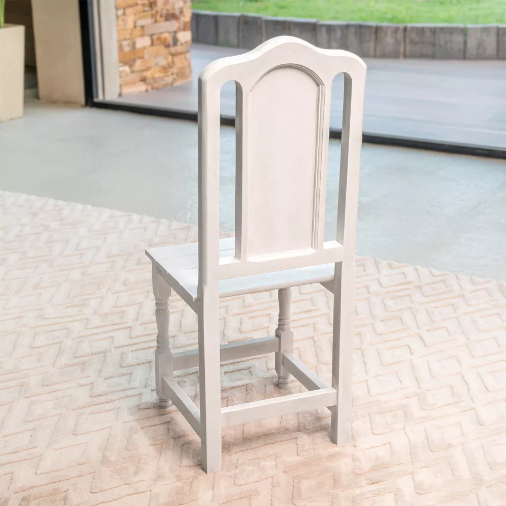 La silla de comedor blanca con respaldo alto aporta una estética limpia y luminosa, ideal para comedores modernos o clásicos. Su estructura en madera ofrece firmeza y durabilidad, convirtiéndola en una pieza cómoda y funcional para el uso diario.