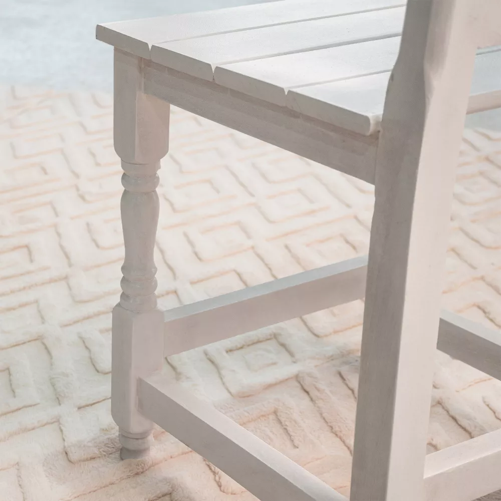 Además de este diseño, contamos con una silla similar de madera blanca que mantiene el mismo estilo. Es una excelente opción para armar conjuntos combinados o sumar variedad dentro del mismo ambiente.