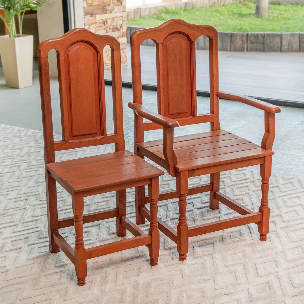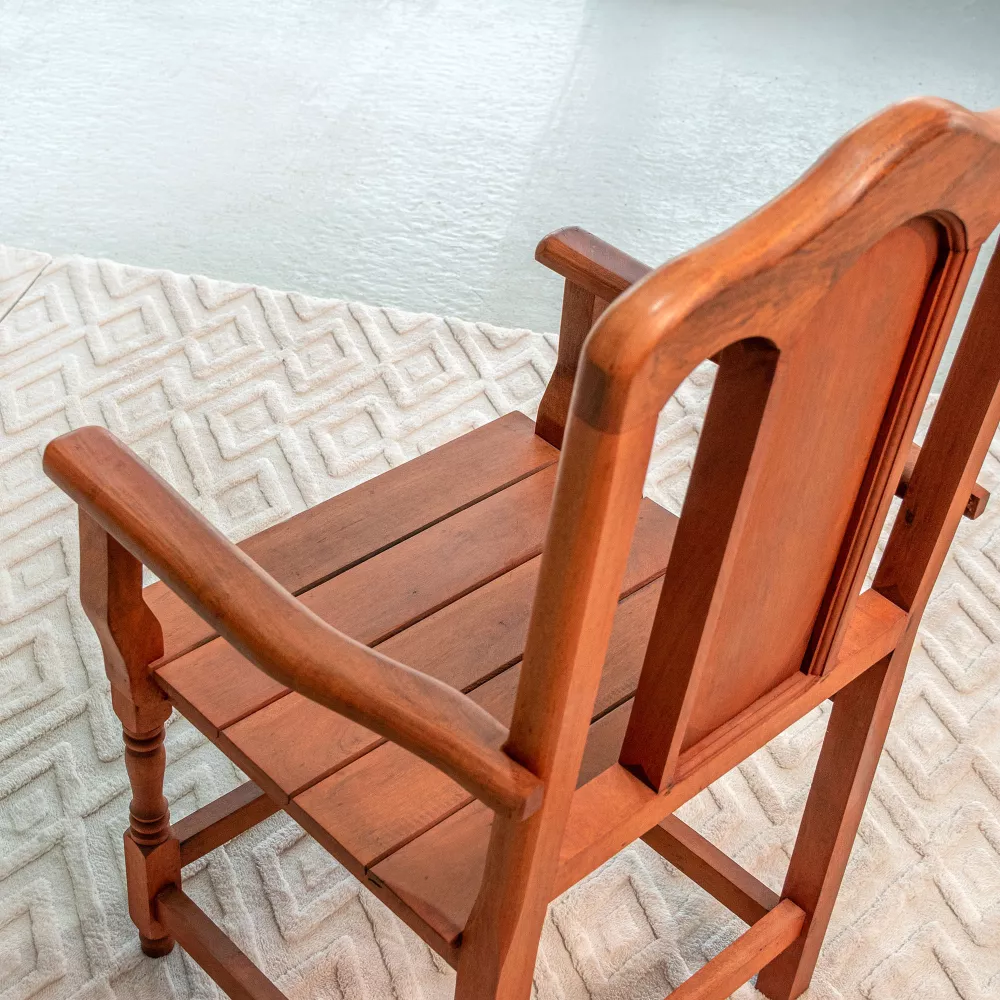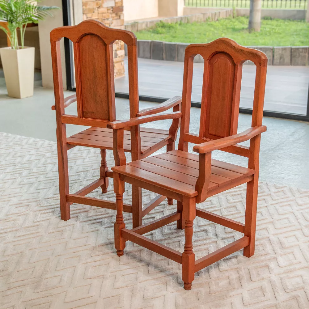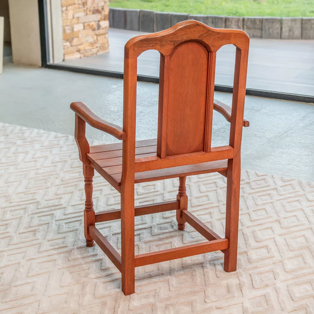La silla de comedor Tamara con apoyabrazos combina la firmeza del algarrobo macizo con un diseño cálido y equilibrado, logrando un confort excepcional. Ideal para quienes valoran lo clásico y durable sin renunciar al estilo.